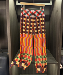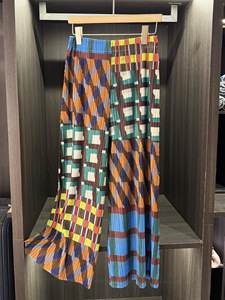 高级感小众褶皱薄款初秋高腰撞色印花休闲百搭显瘦直筒阔腿裤女