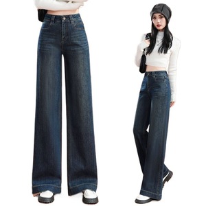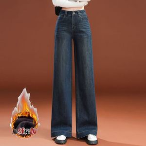 复古阔腿牛仔裤女2025秋冬款高腰显瘦宽松垂感加绒加厚直筒拖地裤
