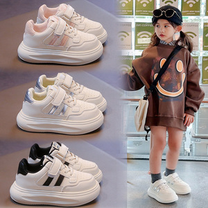 儿童运动鞋女童鞋子秋款2025新款女孩潮牌小白鞋大童皮面软底板鞋