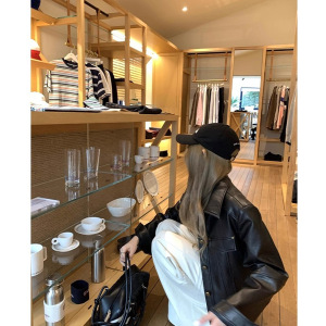 黑皮革手册 黑色皮衣中短款翻领外套高级感铆钉休闲上衣