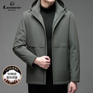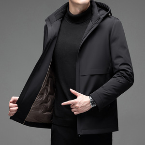 男式商务休闲鹅绒羽绒服冬季中年男士牛奶丝面料保暖连帽鹅绒外套