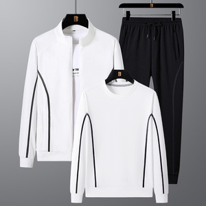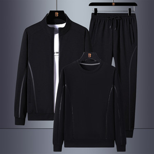 跨境大码套装男士春秋季时尚潮流立领两件套运动休闲百搭三件套男