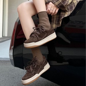 2025秋季新款圆头时尚百搭运动休闲女鞋复古美拉德小白鞋潮流板鞋