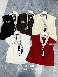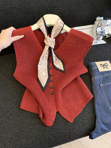 设计感法式高端轻奢女装安哥拉红V领马夹坎肩夏秋无袖背心针织衫