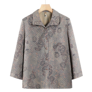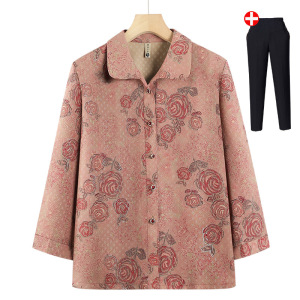 中老年人秋装宽松衬衫女2025新款奶奶秋季开衫衬衣60岁70妈妈上衣