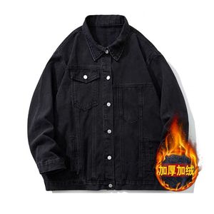 2025新款加绒加厚牛仔外套男春秋潮流宽松夹克男衣服工装外套潮牌