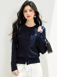 实拍◆有现货◆撞色圆领针织衫长袖时尚百搭毛衣开衫2025秋季新款