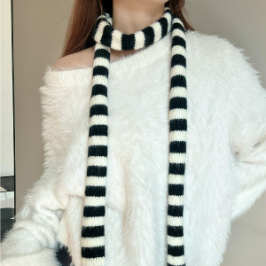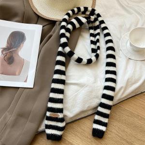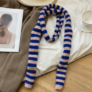 韩版小众时髦y2k条纹拼色长款围巾女秋冬季辣妹保暖百搭装饰围脖