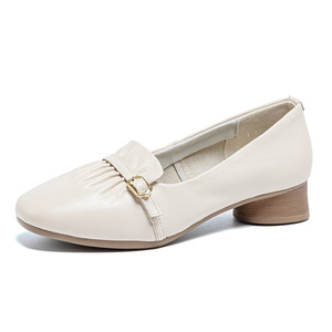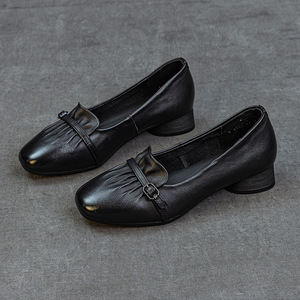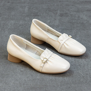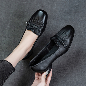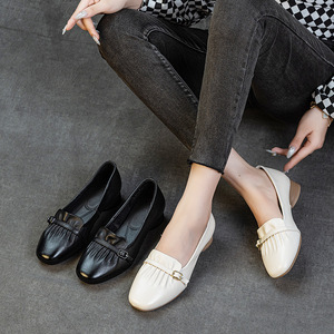 新款春秋小单鞋头层牛皮浅口工装护士鞋软底防滑矮跟简约百搭女鞋