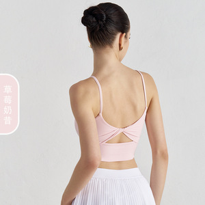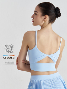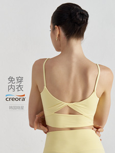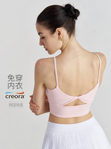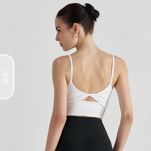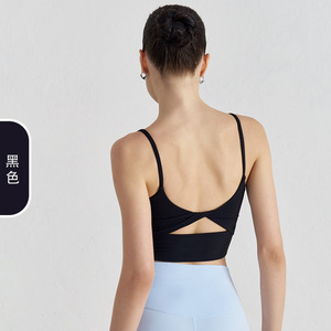 U领吊带运动内衣裸感亲肤带胸垫后背交叉美背瑜伽文胸健身背心女