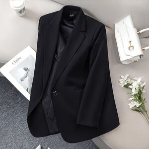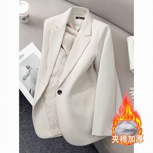 黑色夹棉西装外套女高级感秋冬季加厚大码休闲气质韩版小个子西服