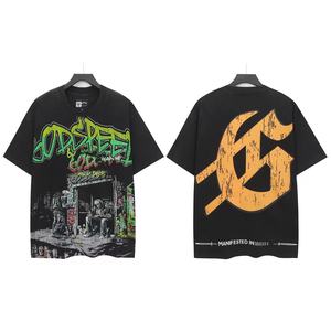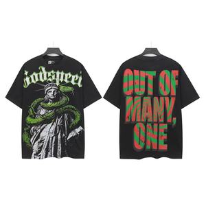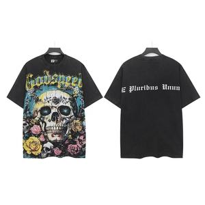 跨境美式摇滚街头洗水复古风宽松短袖高街T