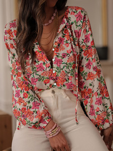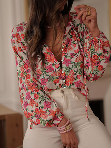 2025秋冬新款复古拼色玫瑰花衬衫上衣女设计感小众长袖雪纺上衣