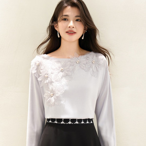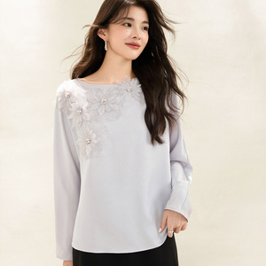 2025秋季新款花瓣圆领显瘦上衣减龄小衫女长袖衬衫2680