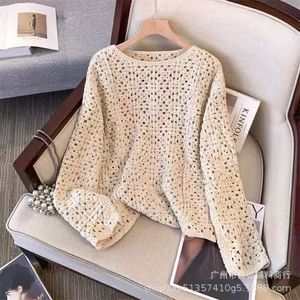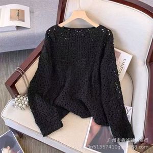 春夏宽松设计长袖气质镂空针织衫夏季百搭薄款罩衫上衣显瘦