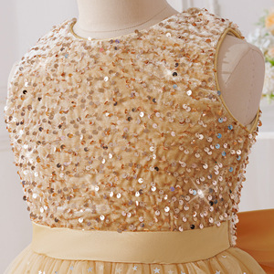 跨境女童公主裙花童婚纱礼服亮片主持人钢琴演出儿童生日蓬蓬纱裙