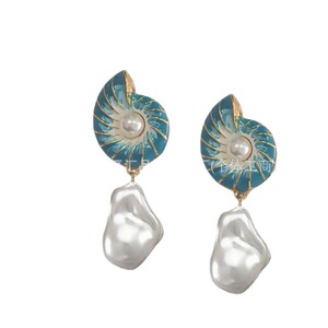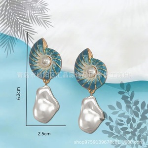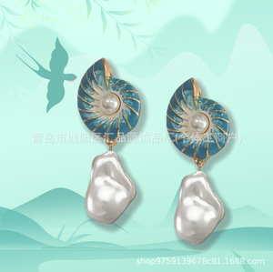 时尚海螺巴洛克仿珍珠耳钉耳饰复古耳环轻奢感个性饰品批发