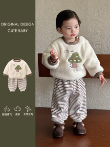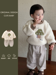 婴幼儿冬季外出服宝宝衣服秋冬款套装帅气可爱加绒卫衣长裤两件套