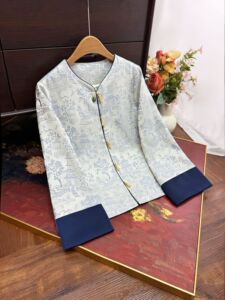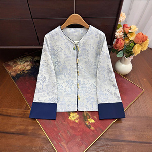2025早秋新款新中式小香风提花外套圆领设计感上衣清新减龄开衫女