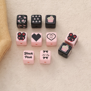 爆款彩色亚克力卡通方块 DIY手工串珠钥匙扣项链手机链挂件小配件