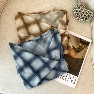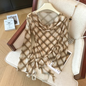 广州十三行高货爆款~长袖网纱上衣女秋季新款不规则格纹百搭小衫