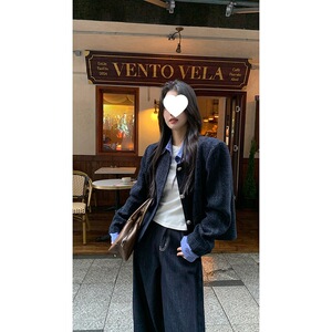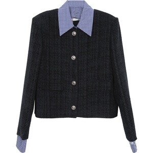 跨境小仙倪子韩系温柔小香风女秋季新排假两件外套显瘦气质衣藏蓝