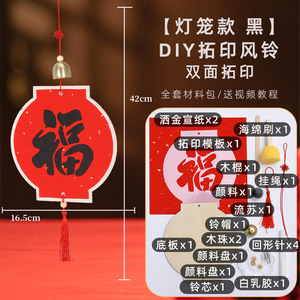 中秋节拓印风铃手工diy木质挂件材料包亲子团建活动新年福字挂饰