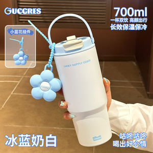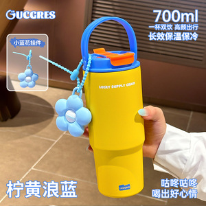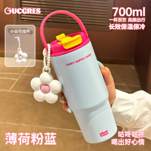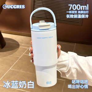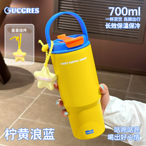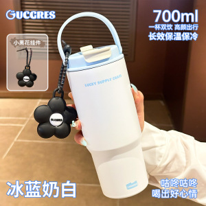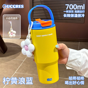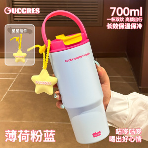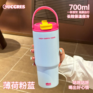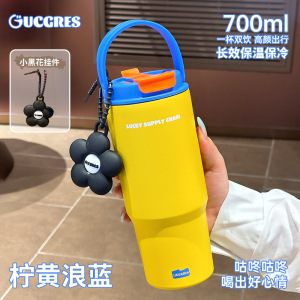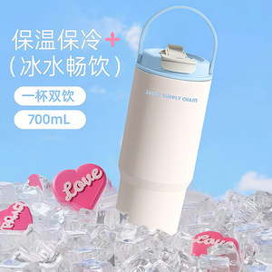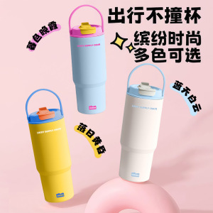 便携高颜值吸管水杯大容量杯子不锈钢内胆保温杯提手车载冰霸杯