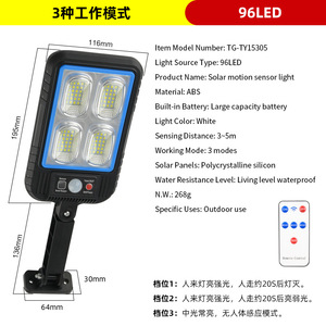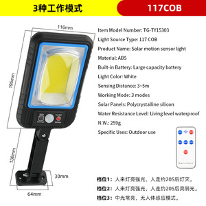 跨境太阳能户外庭院灯自动感应遥控壁灯新款室外防水花园照明路灯