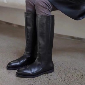 一件代发~胎小牛皮诗歌兰同款低跟长靴真皮圆头平底高筒靴骑士靴