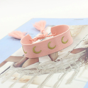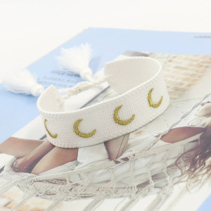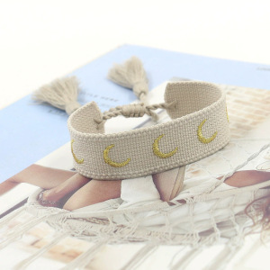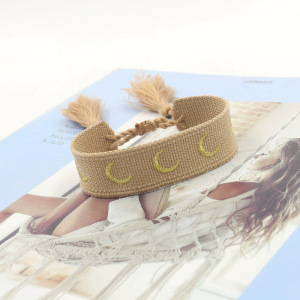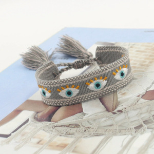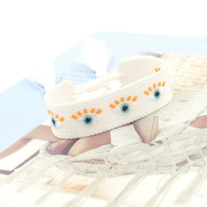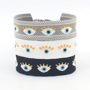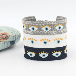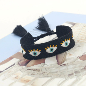欧美恶魔之眼刺绣涤纶手链时尚通勤男女手腕带收工编织流苏手饰品