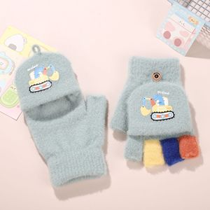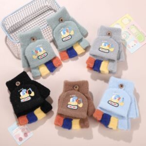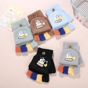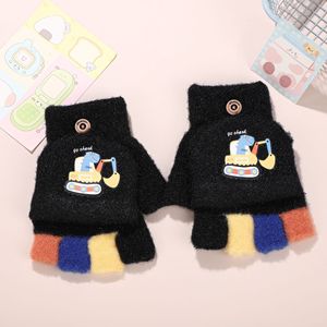 秋冬季写字保暖防寒手套男女童手套卡通挖土机半指翻盖儿童手套