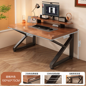 【桌+橡胶木增高架】胡桃木色100cm(25mm桌面)