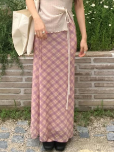 欧美甜美清新风格纹网纱半裙跨境新款修身显瘦少女风直筒长裙女