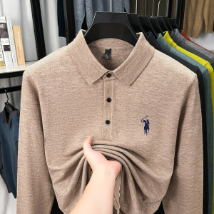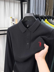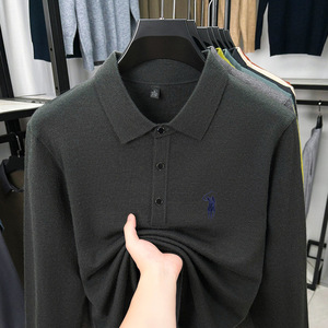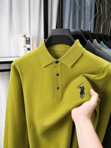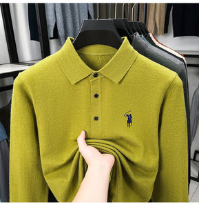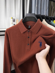 跨境男士马标刺绣针织衫毛衣秋冬新款翻领休闲宽松打底衫上衣男装