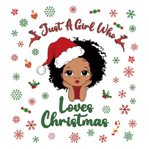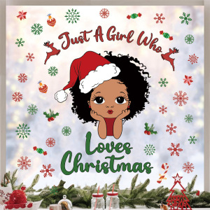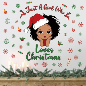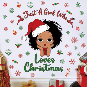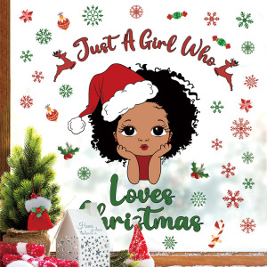 跨境圣诞窗贴黑人女孩儿童房墙贴自粘材质节日气氛雪花窗贴批发