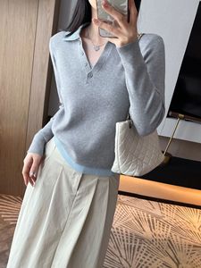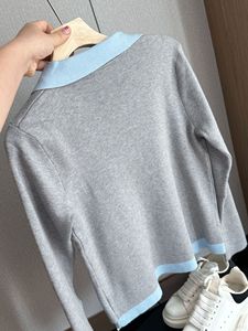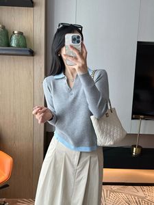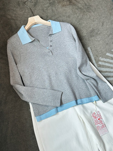 秋季新款POLO领撞色假两件长袖套头针织衫 082b202