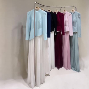 2025年秋季新款欧美亚马逊跨境外贸女装长袖收腰镶钻压褶立领长裙
