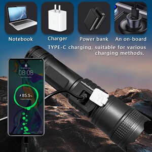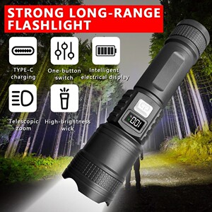 跨境超亮手电筒强光充电户外激光家用迷你长续航多功能手电筒
