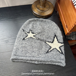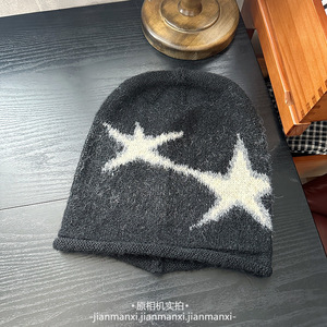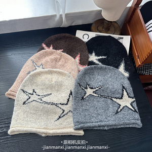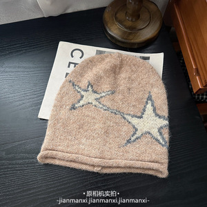2025韩国东大门ins风复古星星毛线帽针织帽休闲帽洋气百搭堆堆帽