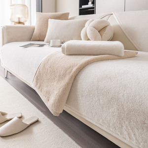 奶油风软糯加厚米貂沙发垫2025新款秋冬款防滑沙发罩套坐垫子跨境