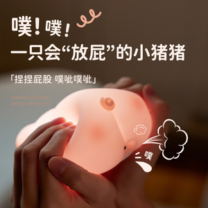 可爱屁屁猪硅胶小夜灯拍拍灯桌面摆件多巴胺小夜灯床头氛围灯宿舍