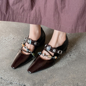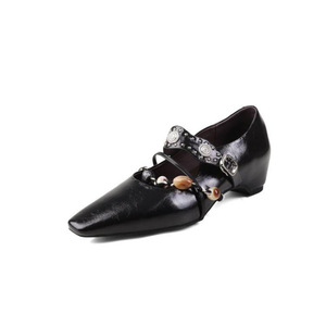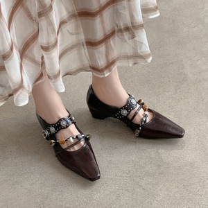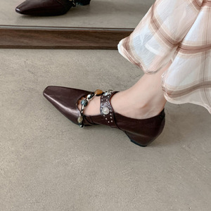 女士铆钉设计感时尚2025年新款方头中跟内增高玛丽珍吸睛浅口单鞋