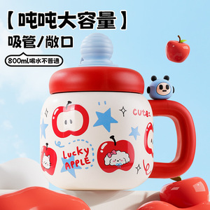 新款胖吨吨杯可爱卡通保温杯大容量水杯带盖不锈钢家用小众随手杯