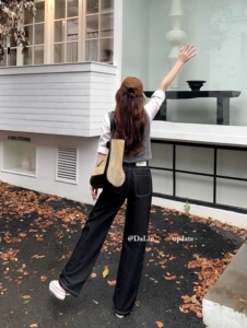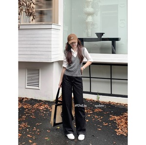 DUOXINIU/多喜牛/DaLin早秋上新窄版阔腿裤女高腰牛仔裤垂坠显高