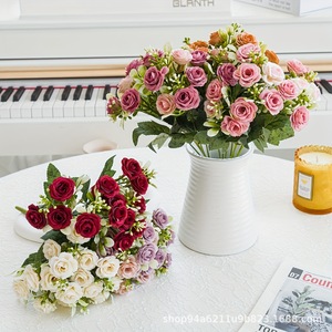仿真花束15头北欧路边玫材料绢花小茶苞假花仿真花摆设桌面装饰花