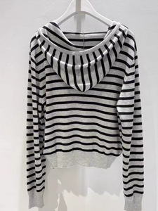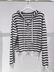 M**檬2025秋季新款时尚百搭条纹连帽针织开衫显瘦上衣4G8233271X