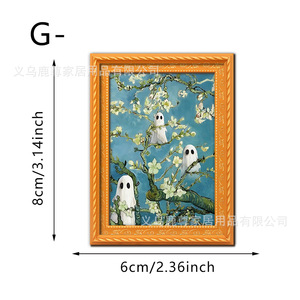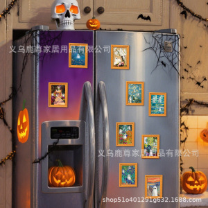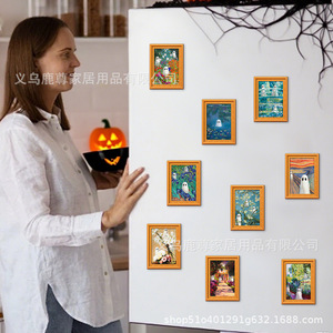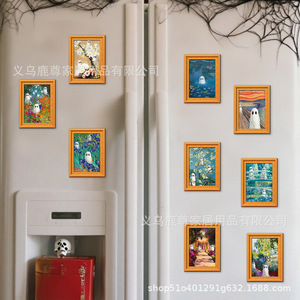 跨境万圣节艺术鲜花边上的小幽灵磁性相框木质复古磁吸冰箱贴批发