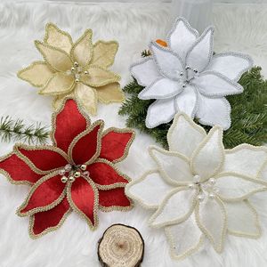 25年新品圣诞节仿真花 撒金粉圣诞橱窗装饰品圣诞花环圣诞装饰花