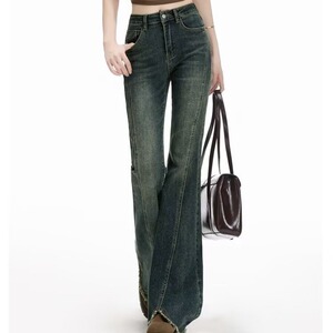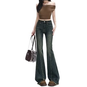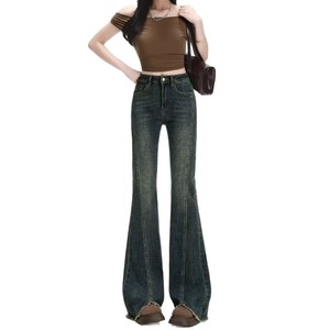 美式复古高街高腰微喇牛仔裤女2025秋季喇叭裤高个子设计感弹力裤